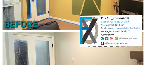 We transformed 11 different rooms within our customer's home, as well as painted the doors and some additional items. The services selected by this customer included painting the walls, trim, doors, and selected cabinets. One major learning point from this job was that our paint selection at Fox Improvements can cover a complex pattern in just ONE coat of paint. Yes, all 11 rooms in this home were painted with only one coat, helping to keep the project within the customer's budget. We are amazed at how well the paint product provided a great quality finish for our customer.
