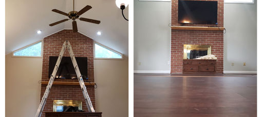 Check out these incredible before and after photos of a 1,144 square foot great room where the service selected was to paint the walls only. This was the first job that we were up quite high at 16 feet! This was a job that we completed with just one coat of paint to meet the customers budget.